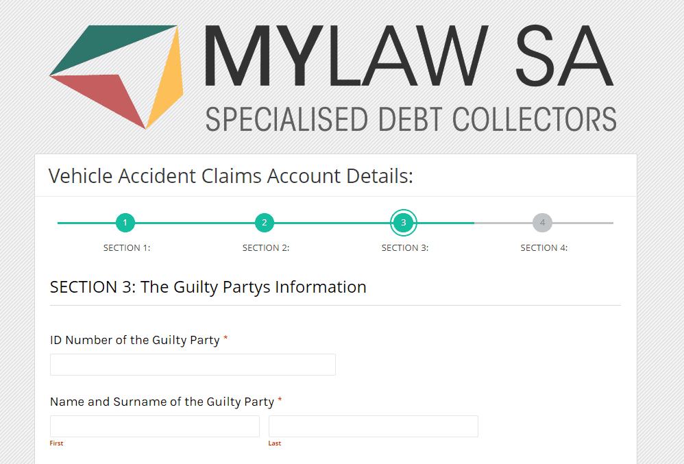 Requires a minimum of at least a contact number, vehicle registration number or an ID number of the other driver (defendant).